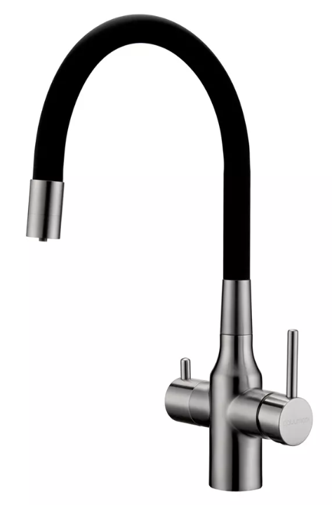 смеситель для кухни, латунь, дополнительный излив для фильтрованной воды, брашированная сталь, черный шланг