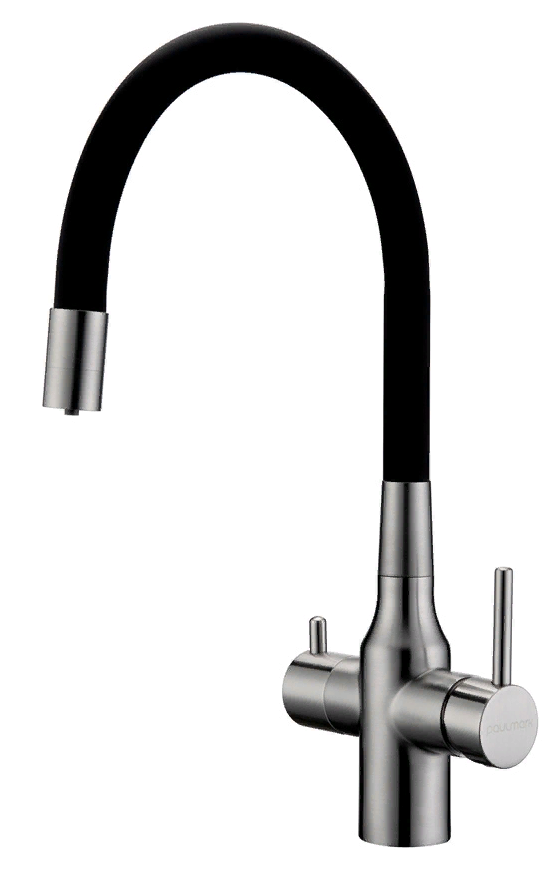 смеситель для кухни, латунь, дополнительный излив для фильтрованной воды, никель, черный шланг