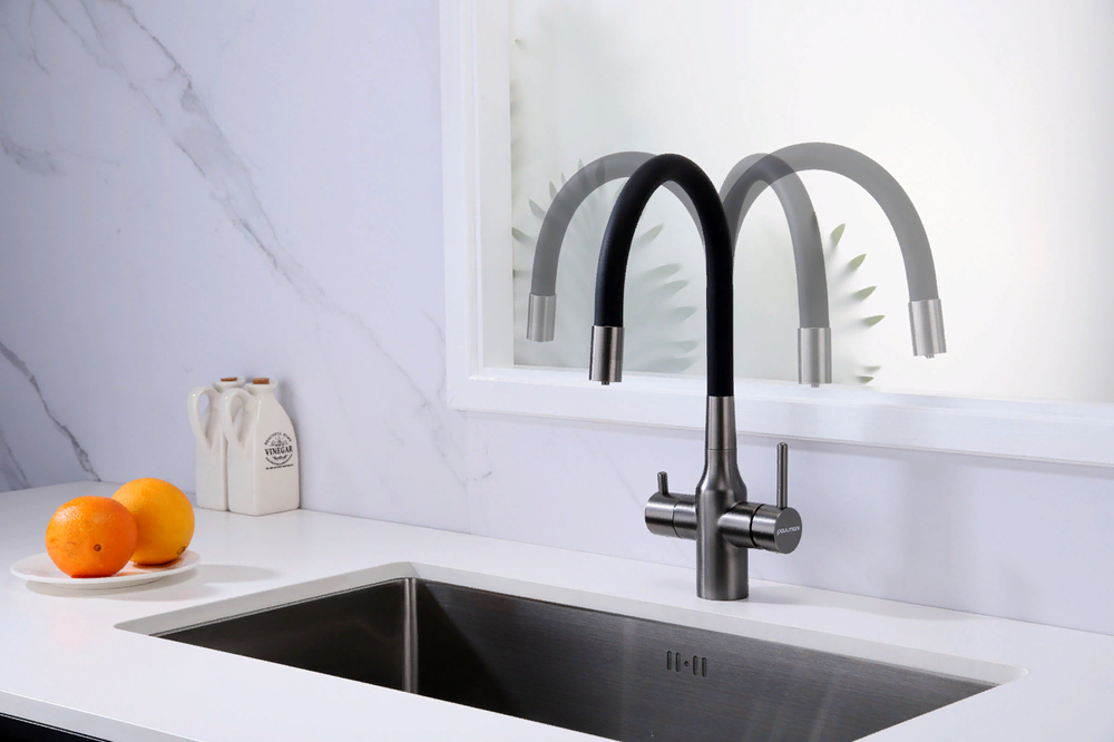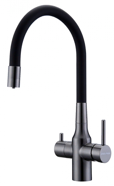 смеситель для кухни, латунь, дополнительный излив для фильтрованной воды, вороненая сталь, черный шланг