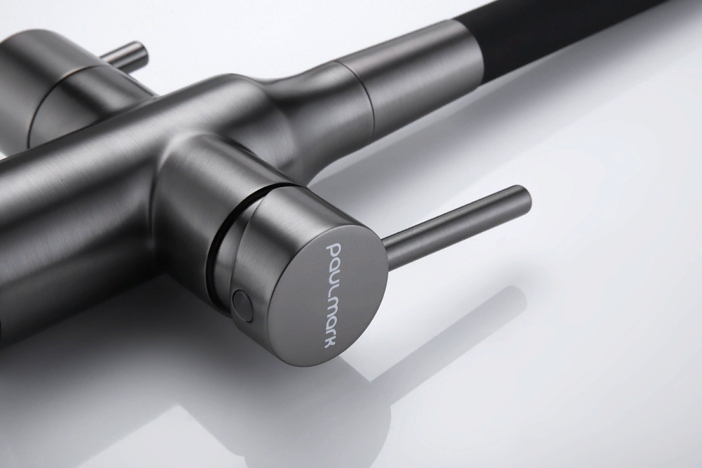 Paulmark SALIX, смеситель, вороненая сталь, черный шланг Смеситель из металла