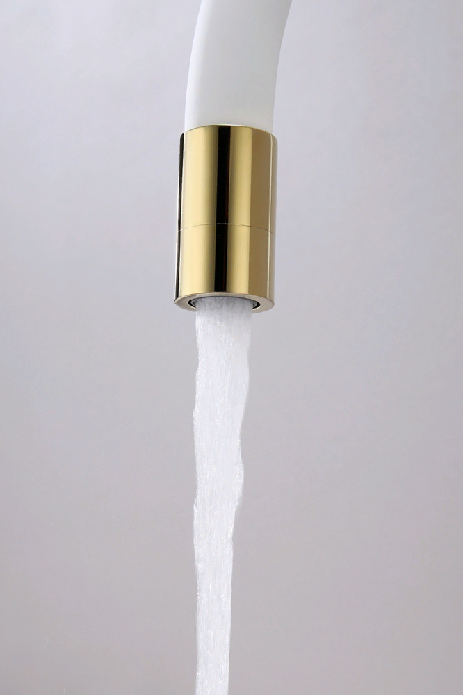 Paulmark SALIX, смеситель, золото, белый шланг Смеситель из металла