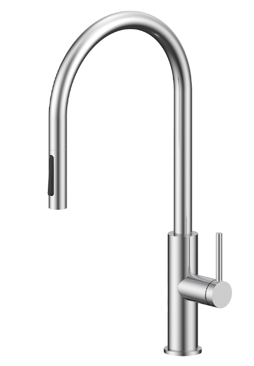 смеситель для кухни, латунь, высокий поворотный выдвижной излив, хром