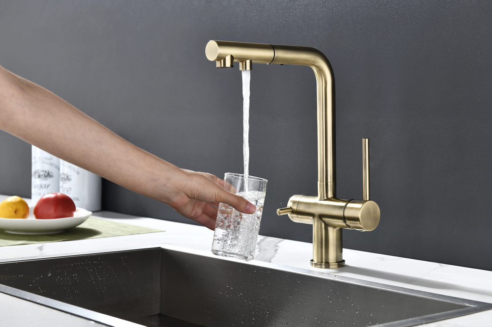смеситель для кухни, латунь, дополнительный излив для фильтрованной воды, бронза