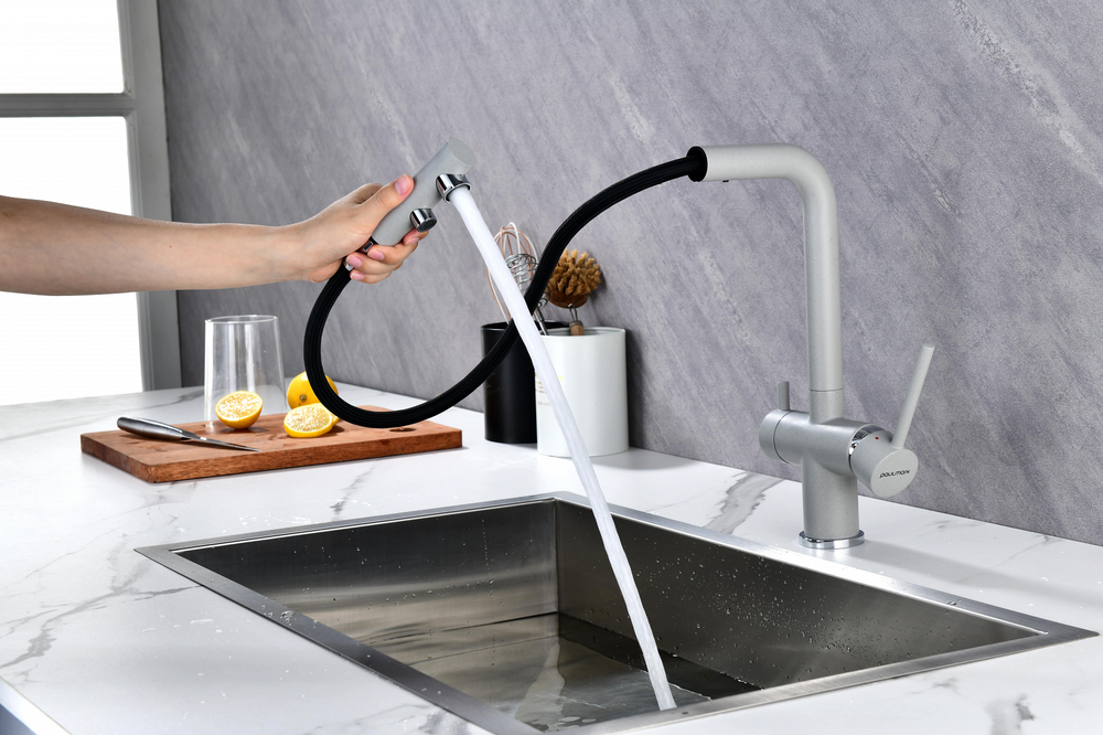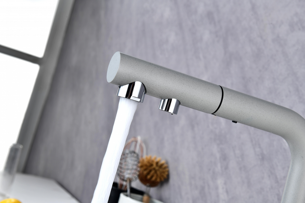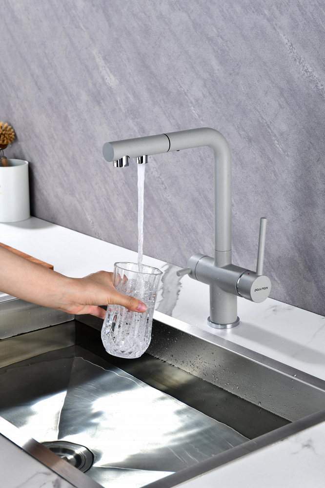 смеситель для кухни, латунь, дополнительный излив для фильтрованной воды, серый дым