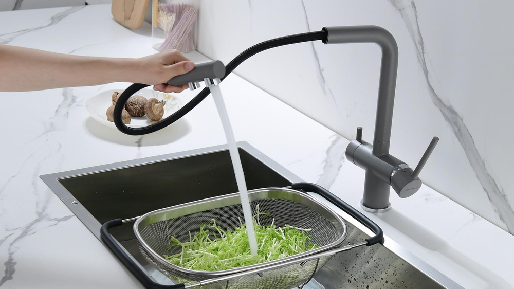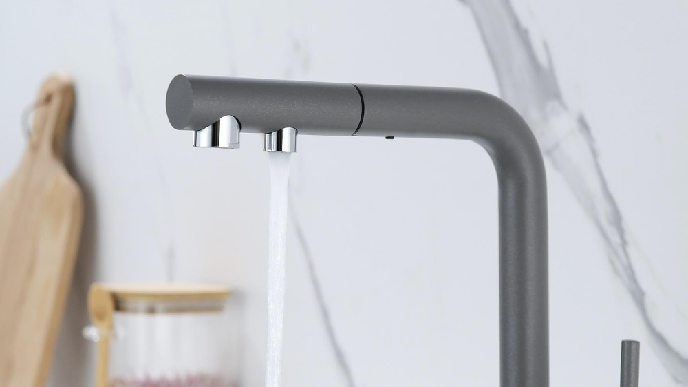 смеситель для кухни, латунь, дополнительный излив для фильтрованной воды, серый металлик