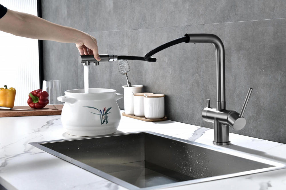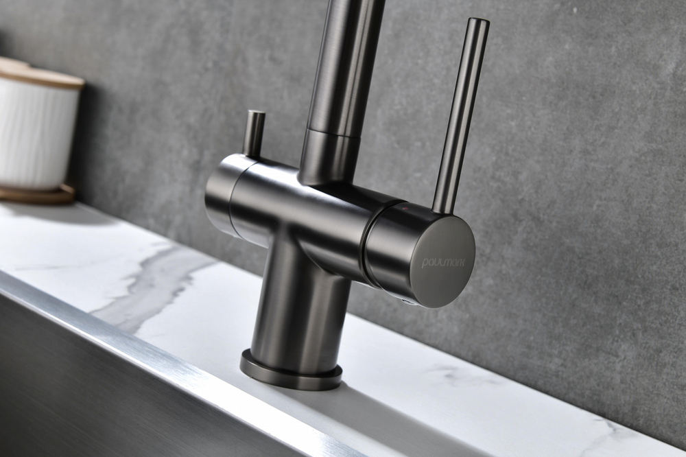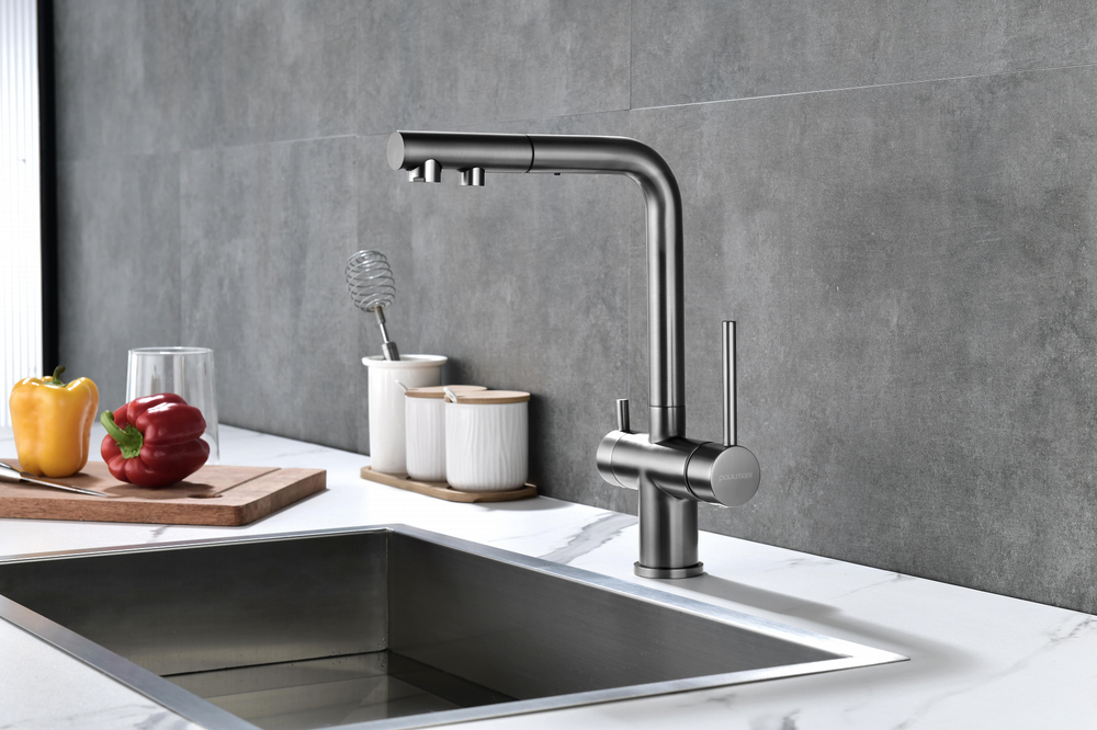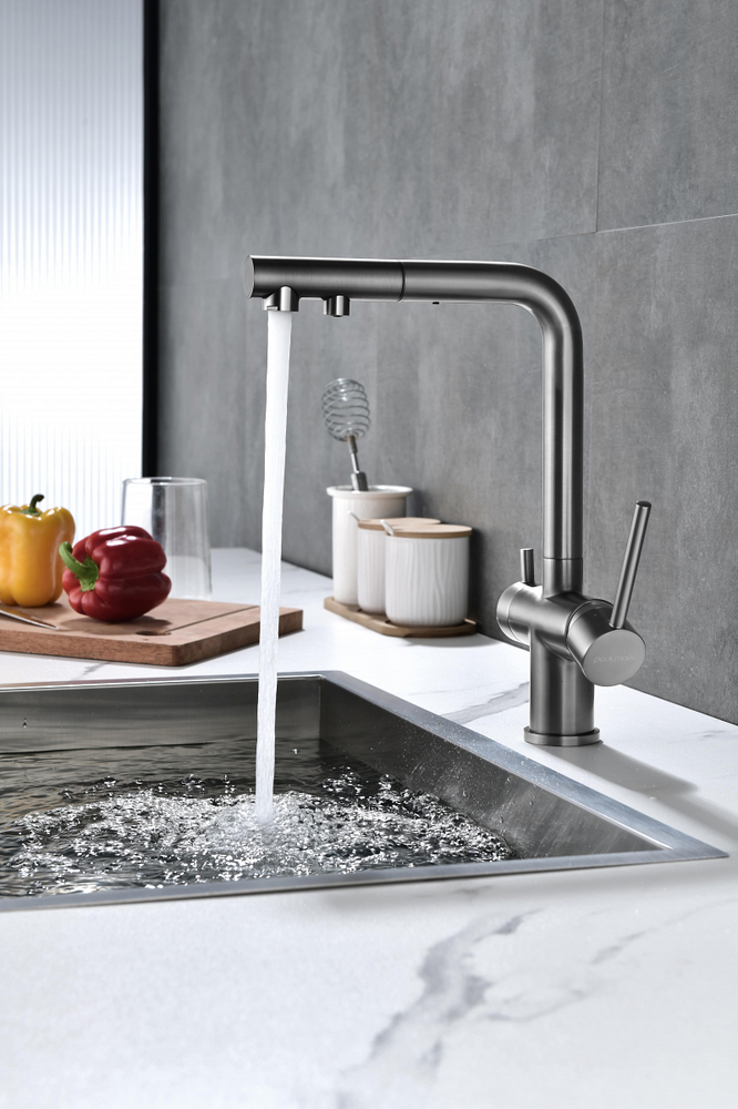 смеситель для кухни, латунь, дополнительный излив для фильтрованной воды, вороненая сталь