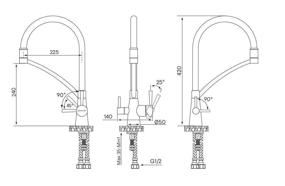 Paulmark SIEGEN, смеситель, брашированное золото Смеситель из металла