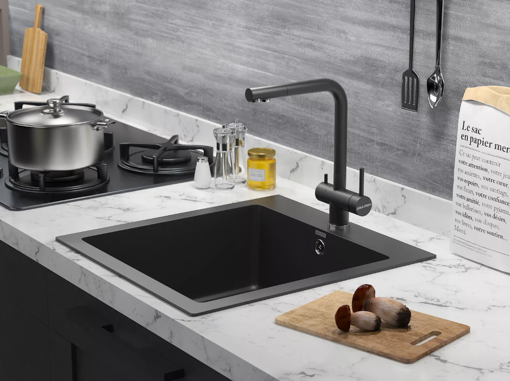 смеситель для кухни, нержавеющая сталь, дополнительный излив для фильтрованной воды, черный