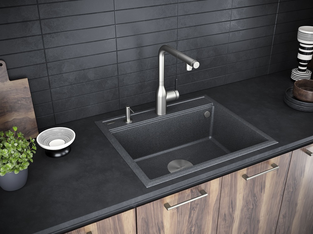 Расстояние от дна до верхней кромки чаши мойки. Оптимальная глубина — 15-18 см. Чем глубже мойка, тем меньше брызг попадет наружу.