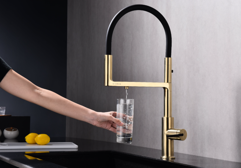 смеситель для кухни, латунь, дополнительный излив для фильтрованной воды, светлое брашированное золото