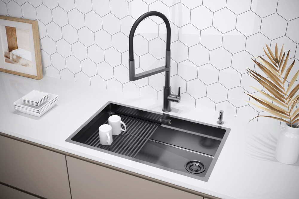 смеситель для кухни, латунь, дополнительный излив для фильтрованной воды, вороненая сталь
