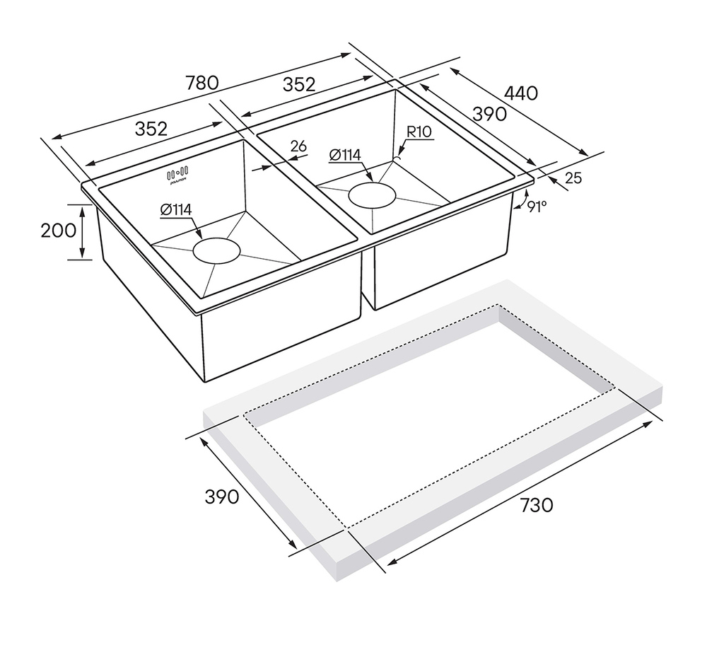 Paulmark GERBERG 78/2 UNI, мойка, нержавеющая сталь брашированная Мойка из нержавеющей стали