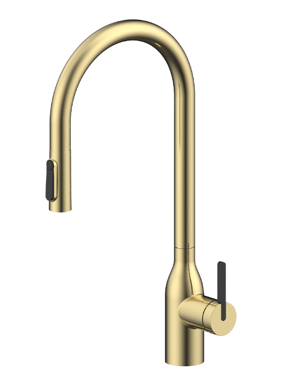 смеситель для кухни, латунь, дополнительный излив для фильтрованной воды, светлое брашированное золото