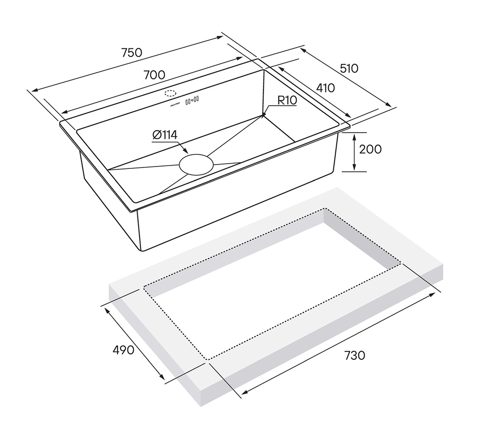 Paulmark KRONER 75, мойка, нержавеющая сталь, вороненая сталь Мойка из нержавеющей стали