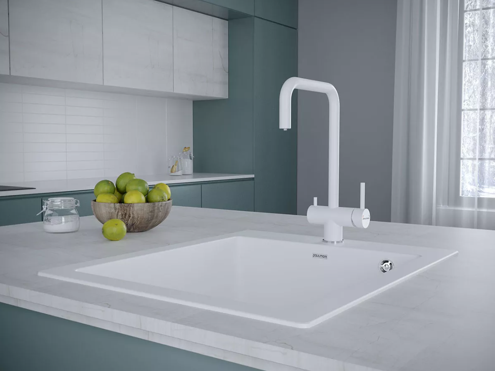 смеситель для кухни, нержавеющая сталь, дополнительный излив для фильтрованной воды, белый матовый