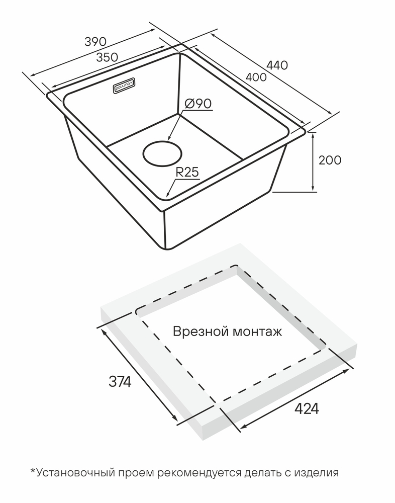 мойка, нержавеющая сталь, 390х440 мм, матовый черный