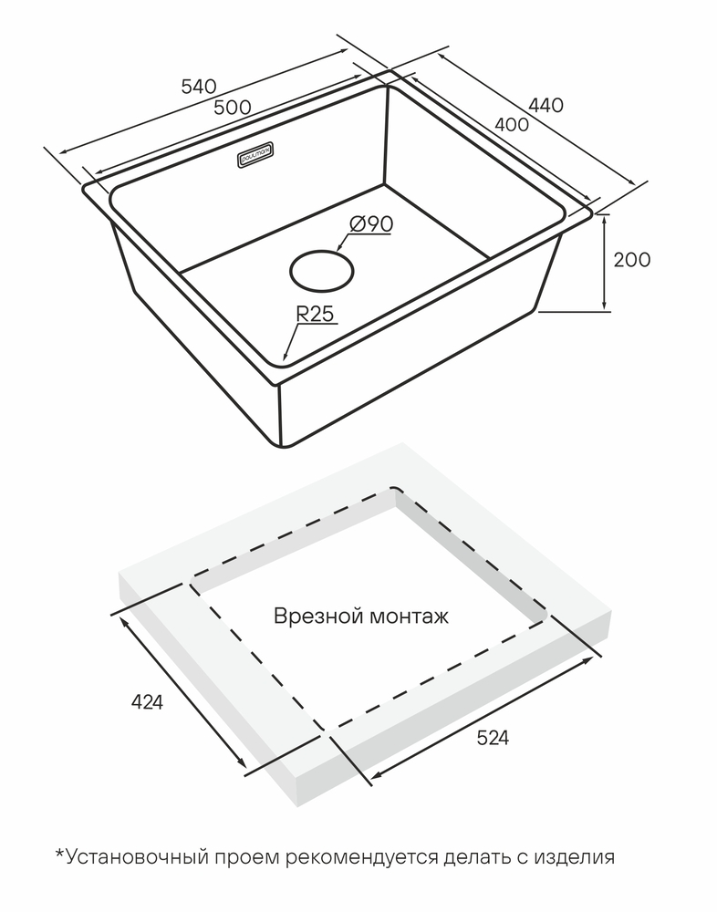 мойка, нержавеющая сталь, 540х440 мм, светлое золото