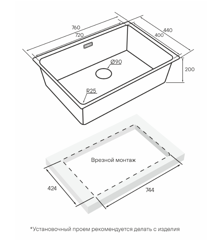 мойка, нержавеющая сталь, 760х440 мм, нержавеющая сталь брашированная
