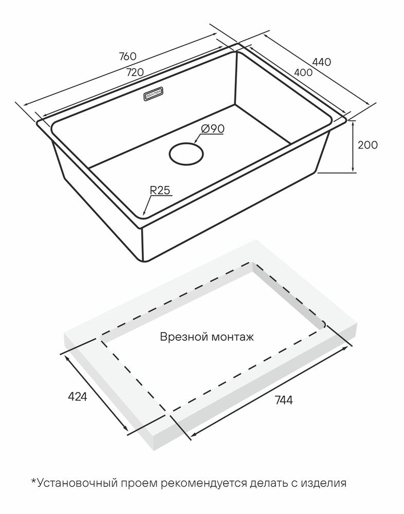 мойка, нержавеющая сталь, 760х440 мм, матовый черный