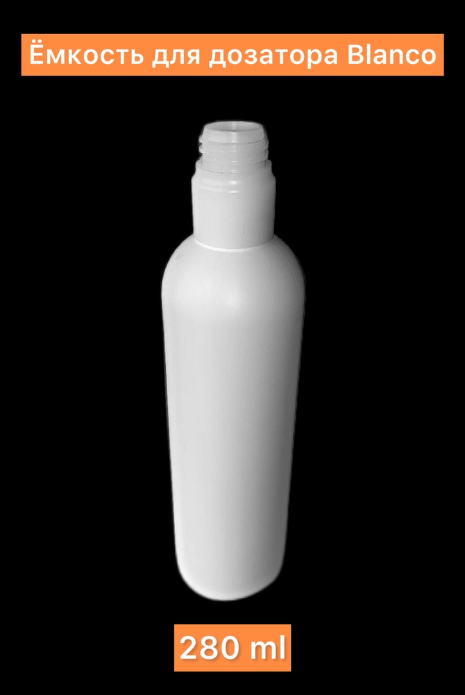 Флакон для дозатора Blanco арт 122237 выполнен из плотного белого пластика, а также укреплен переход от резьбы к корпусу, что значительно продлевает срок службы в сравнении с оригинальной ёмкостью.