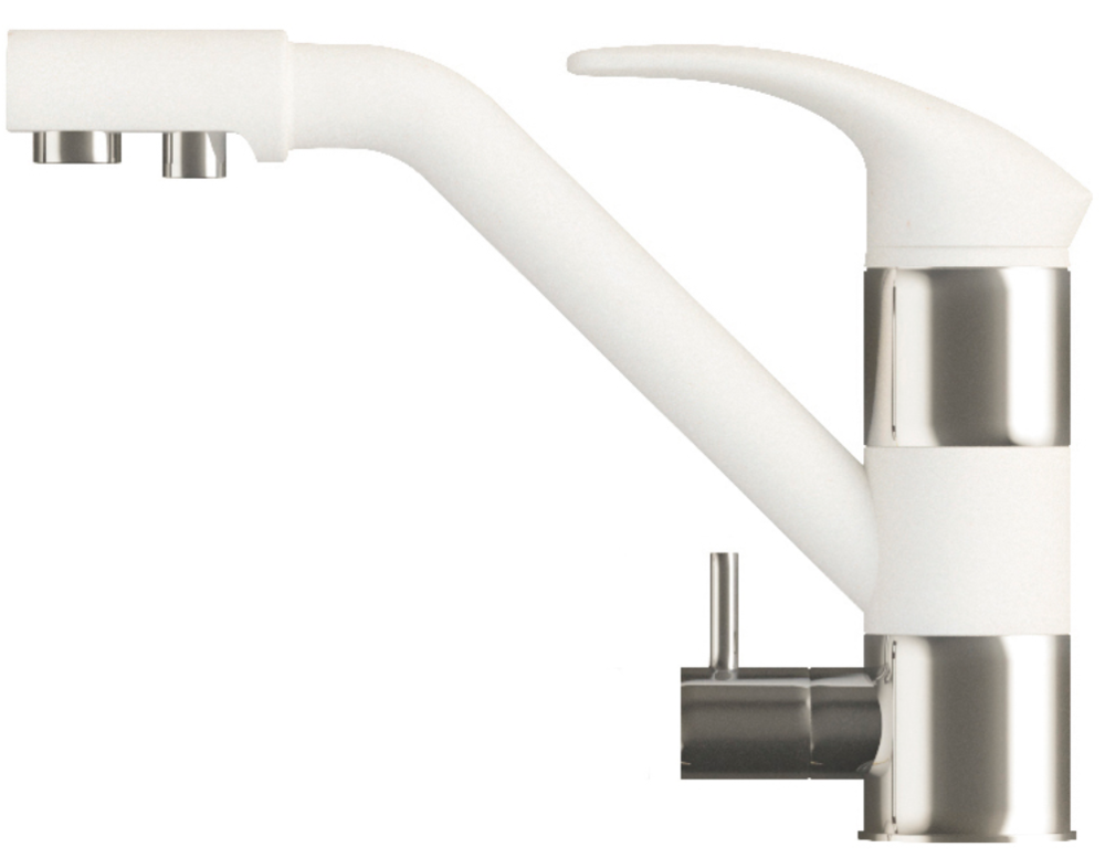 смеситель для кухни, латунь, дополнительный излив для фильтрованной воды, белый хлопок