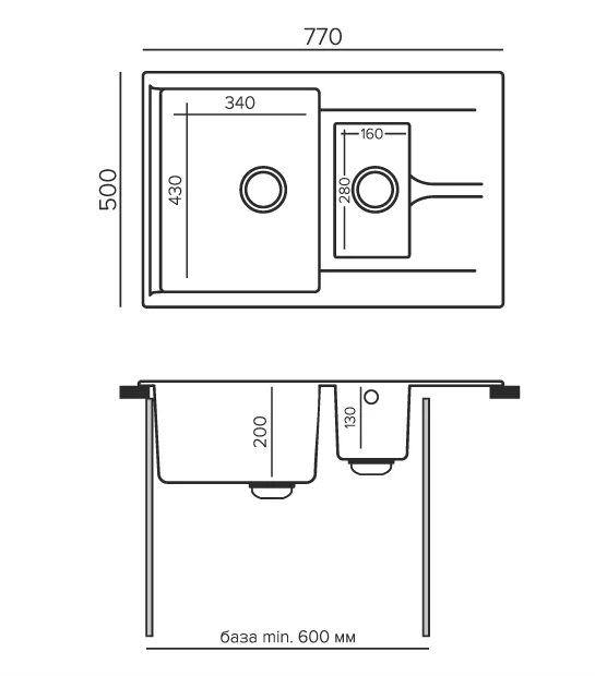 Определяет расположение крыла мойки. Выбирая вариант исполнения мойки, нужно учитывать особенности кухонного гарнитура.