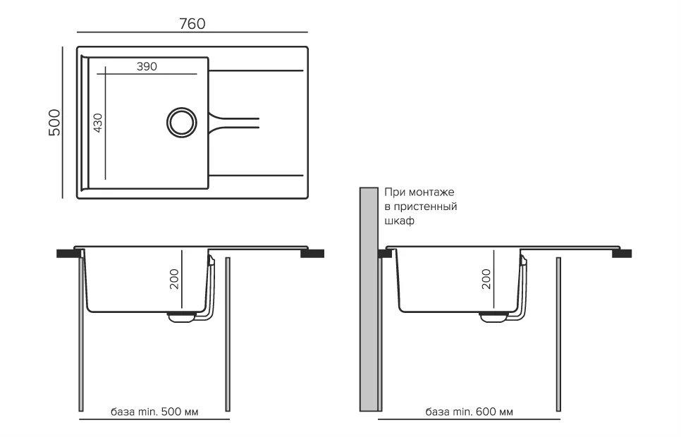 Определяет расположение крыла мойки. Выбирая вариант исполнения мойки, нужно учитывать особенности кухонного гарнитура.