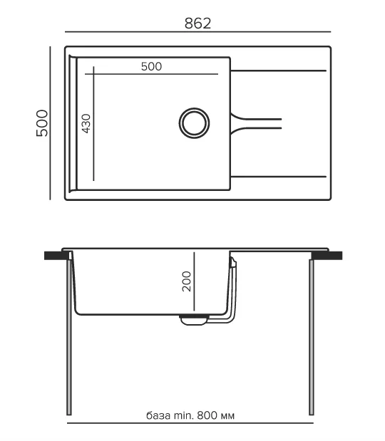мойка, мрамор, 862х500 мм, опал