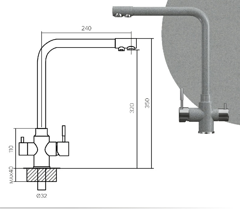 Polygran Вега, смеситель, кремовый №327 Смеситель «под гранит»