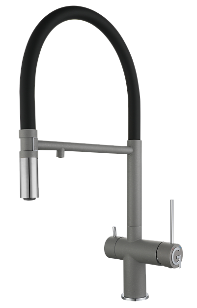 смеситель для кухни, латунь, дополнительный излив для фильтрованной воды, серый/хром