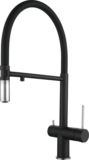 смеситель для кухни, латунь, дополнительный излив для фильтрованной воды, черный/хром