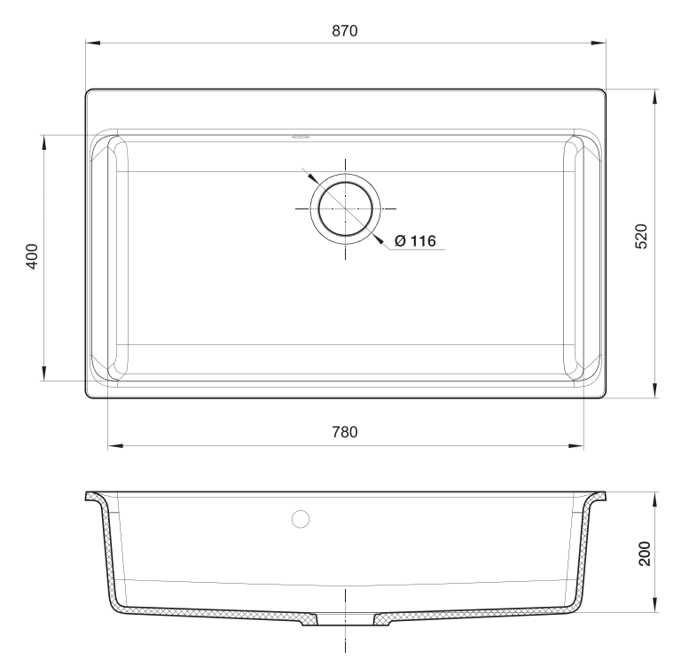 Расстояние от дна до верхней кромки чаши мойки. Оптимальная глубина — 15-18 см. Чем глубже мойка, тем меньше брызг попадет наружу.