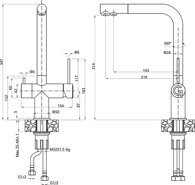 Rivelato LUGANO 1523513 antracite/cromo, смеситель, гранит, антрацит/хром Смеситель хром/гранит
