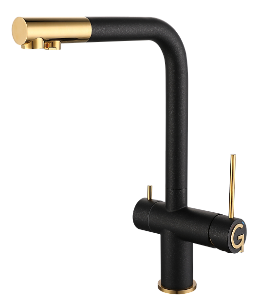 смеситель для кухни, латунь, дополнительный излив для фильтрованной воды, антрацит/золото