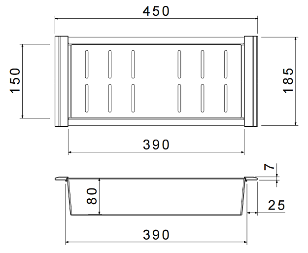 коландер, 450х185х80 мм, нержавеющая сталь/черный