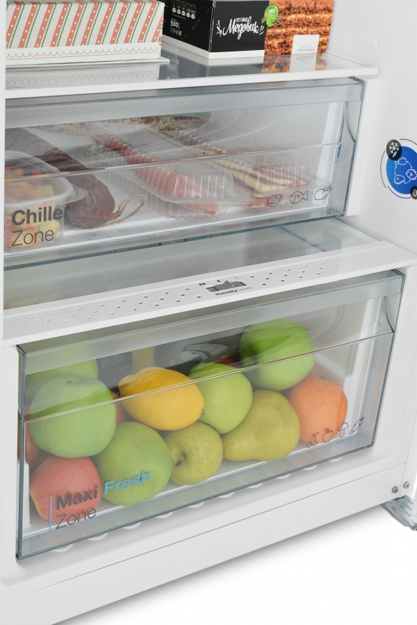 В зоне свежести температура держится на уровне 0°С, так продукты дольше остаются свежими. Подходит для свежего мяса, рыбы, фруктов, овощей.