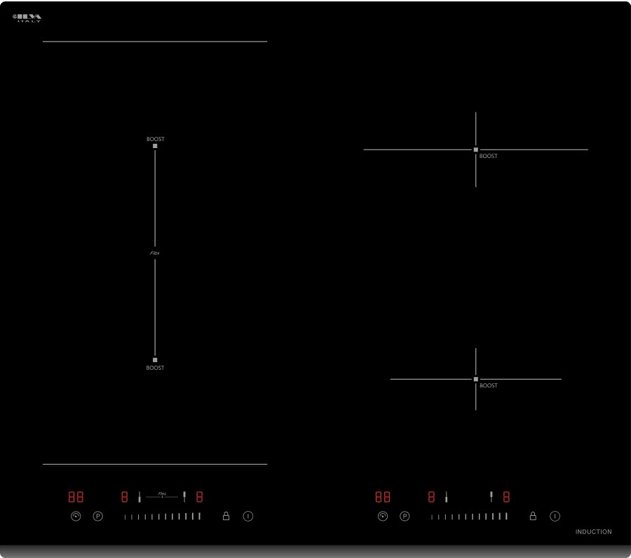 поверхность варочная стеклокерамическая индукционная, 60 см, черный, без рамки