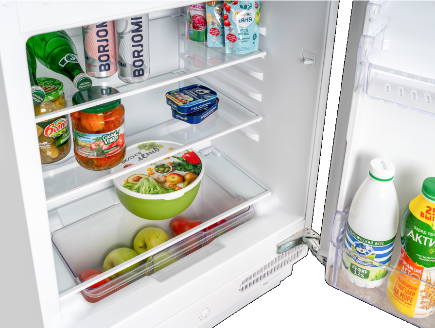 В зоне свежести температура держится на уровне 0°С, так продукты дольше остаются свежими. Подходит для свежего мяса, рыбы, фруктов, овощей.