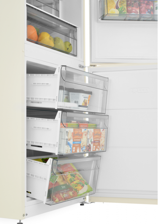 холодильник-морозильник отдельностоящий, 360 л, класс энергосбережения А++, No Frost, 59,5х65х201 см, мраморно-бежевый