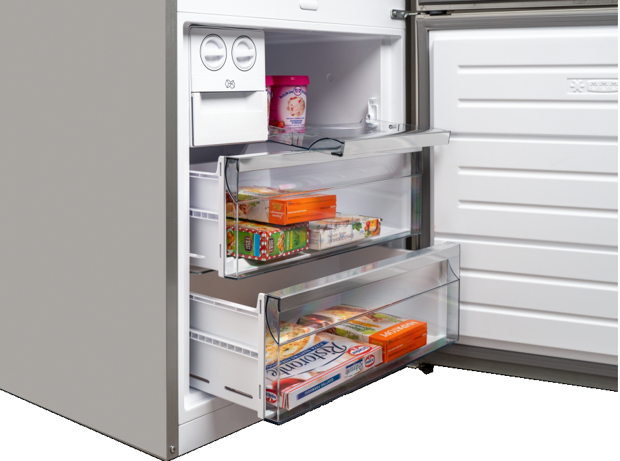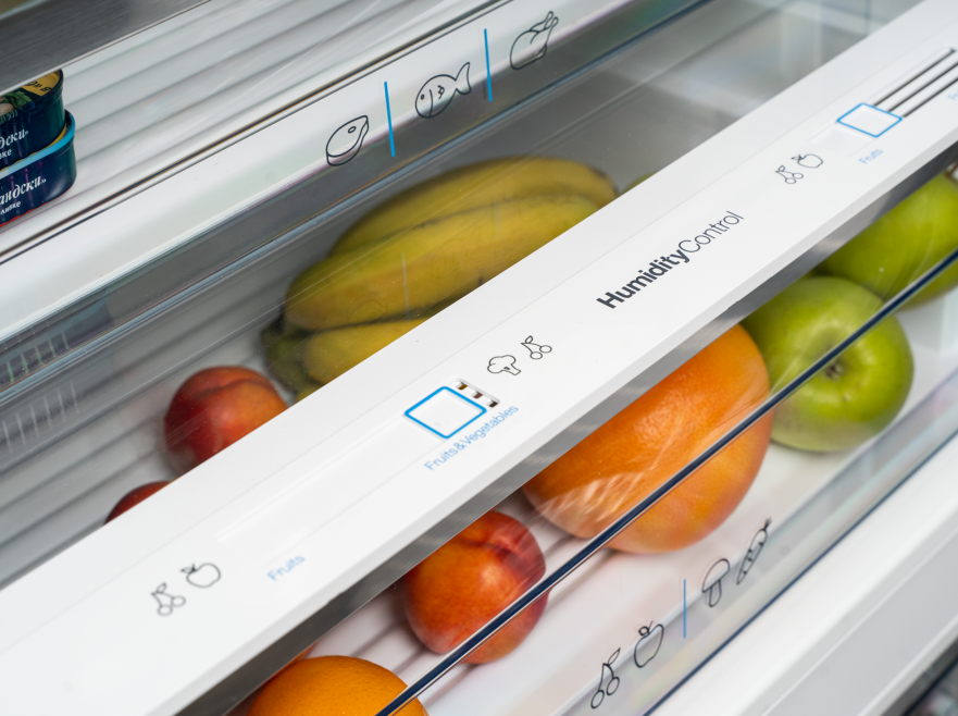 В зоне свежести температура держится на уровне 0°С, так продукты дольше остаются свежими. Подходит для свежего мяса, рыбы, фруктов, овощей.