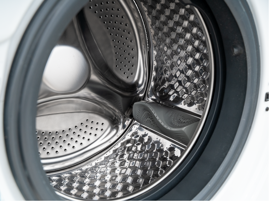 Двигатель соединяется с барабаном напрямую. Конструкция снижает уровень шума и не включает часто изнашивающиеся шкивы и приводной ремень.