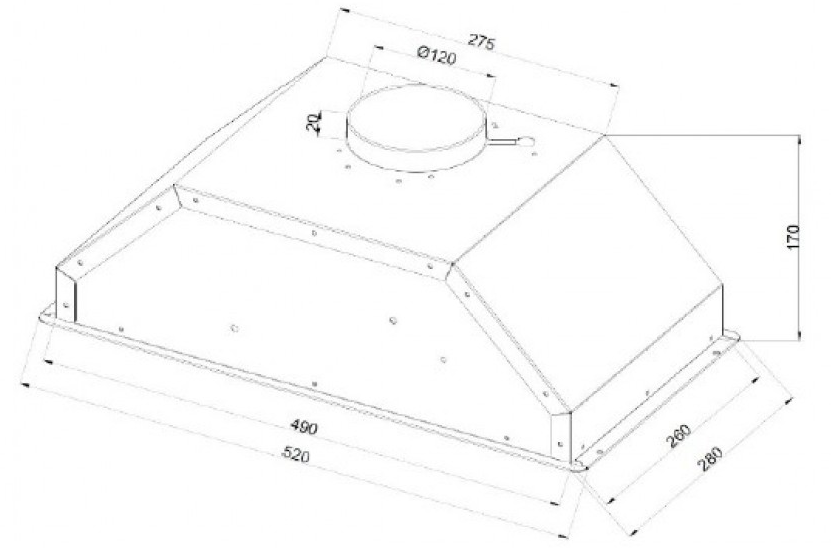 вытяжка встраиваемая в подвесной шкаф, 52 см, 650 м3/ч, нержавеющая сталь