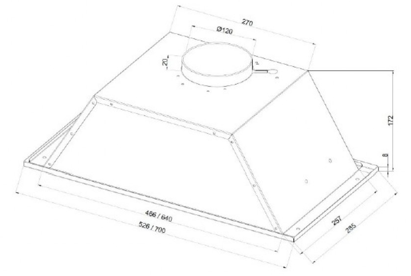 вытяжка встраиваемая в подвесной шкаф, 72 см, 1000 м3/ч, нержавеющая сталь