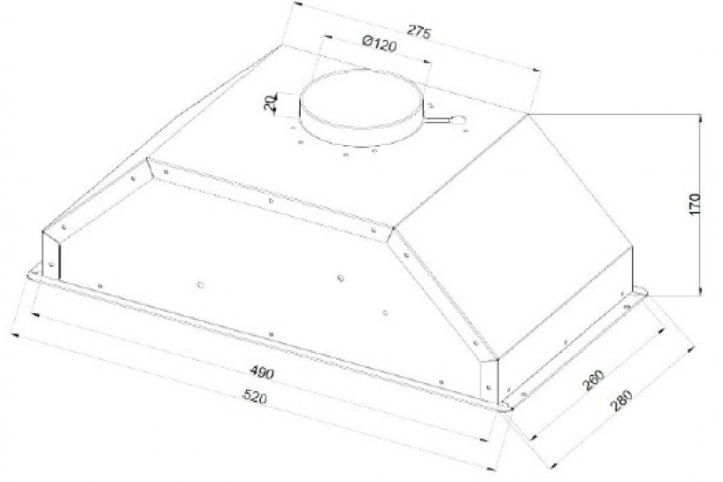 вытяжка встраиваемая в подвесной шкаф, 52 см, 650 м3/ч, черный