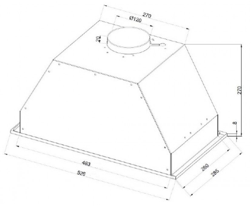 вытяжка встраиваемая в подвесной шкаф, 53 см, 650 м3/ч, черное стекло