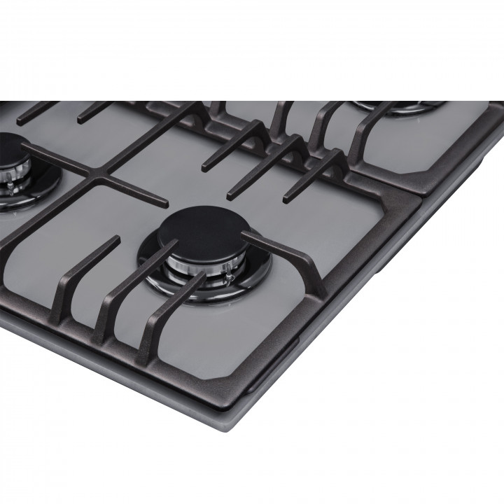 поверхность газовая, 60 см, газ на стекле, 4 конфорки, решетки чугунные, серый