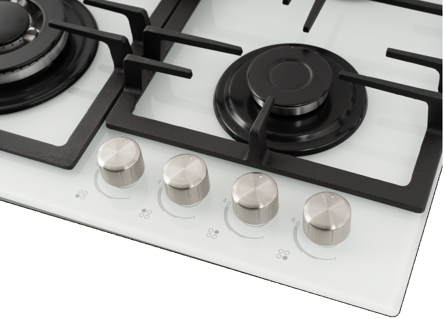 поверхность газовая, 60 см, газ на стекле, 4 конфорки, решетки чугунные, белый
