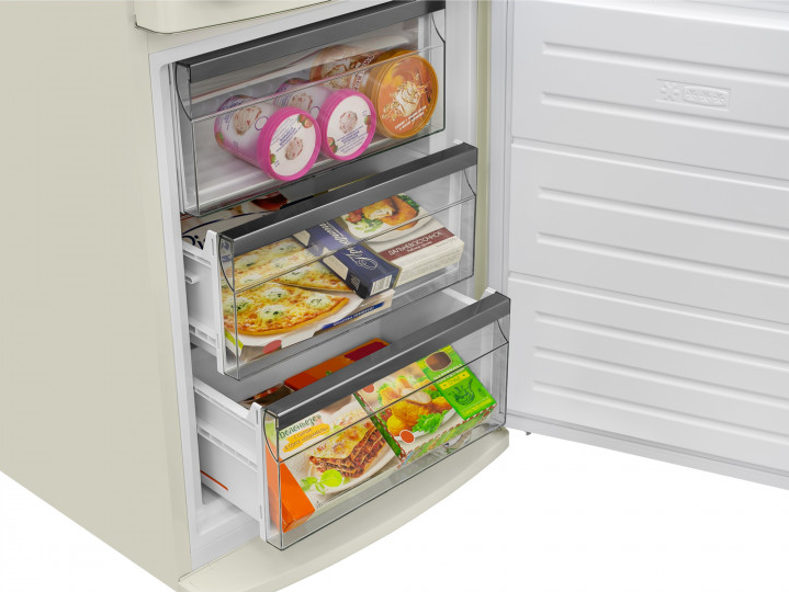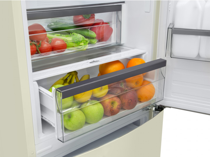 В зоне свежести температура держится на уровне 0°С, так продукты дольше остаются свежими. Подходит для свежего мяса, рыбы, фруктов, овощей.