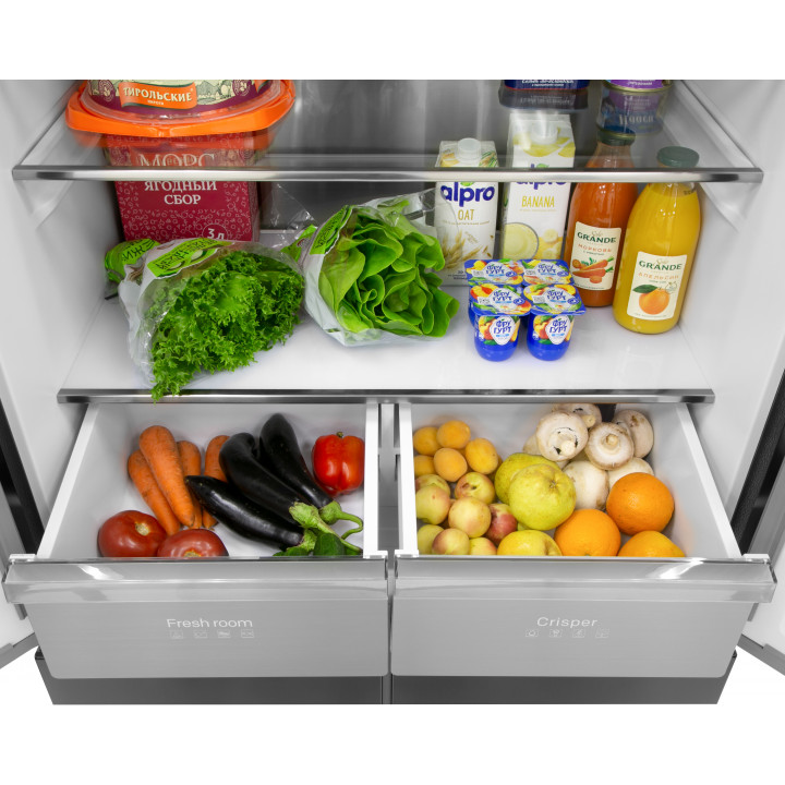 В зоне свежести температура держится на уровне 0°С, так продукты дольше остаются свежими. Подходит для свежего мяса, рыбы, фруктов, овощей.