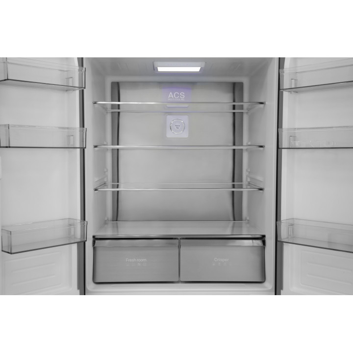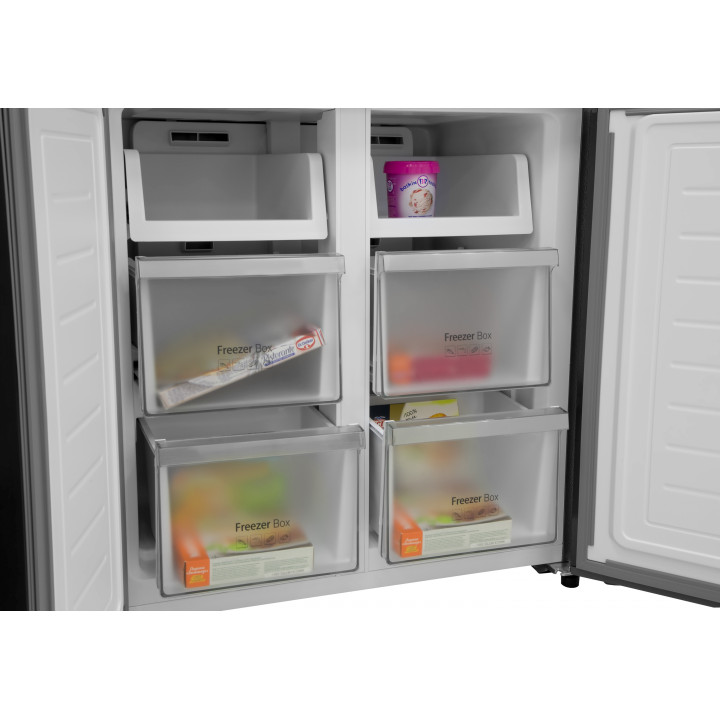 холодильник-морозильник Side-by-Side отдельностоящий, 495 л, класс энергосбережения А+, No Frost, 83,3х66х189 см, темная нержавеющая сталь